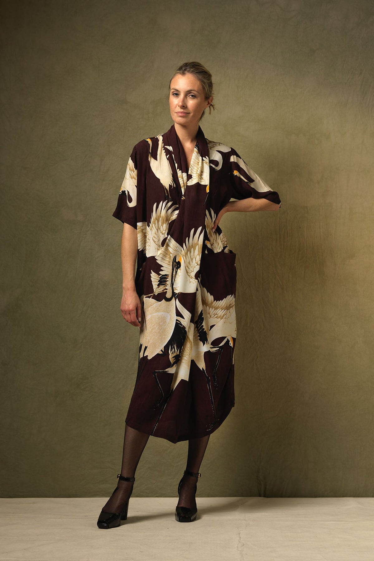Storks and cranes have been a major art deco trend in both fashion and interiors and this Stork Burgundy Rachel dress is perfect for anyone looking for something chic, stylish and in vogue!