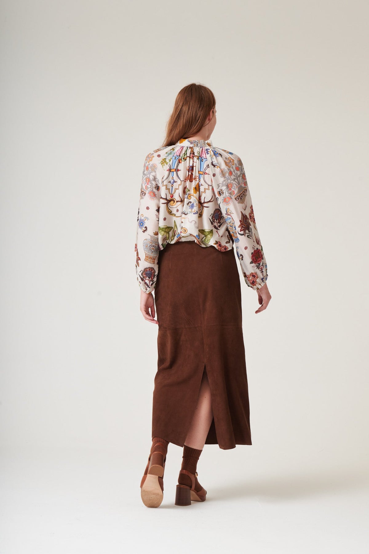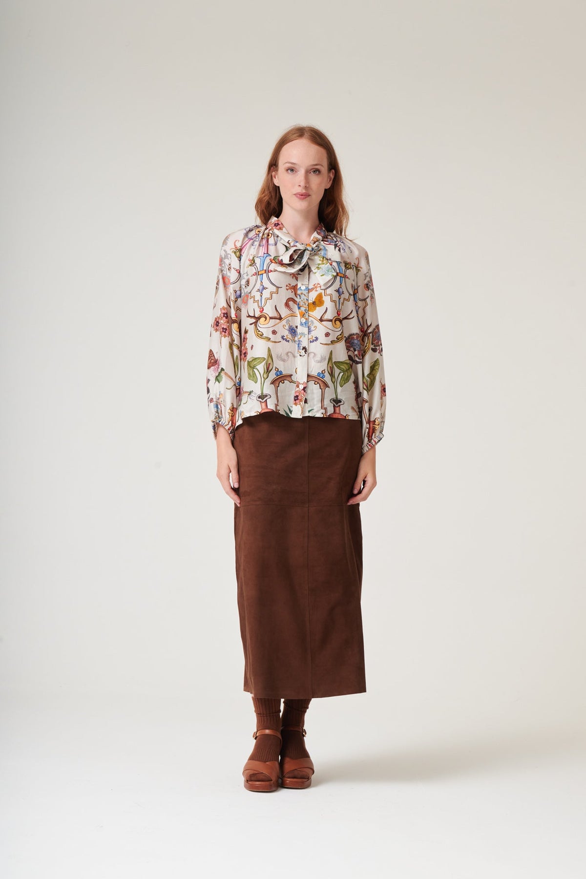 This classic shape blouse shows our prints beautifully. The Pussybow can be teamed with our A line skirt for a more formal look or worn or simply as a casual blouse.