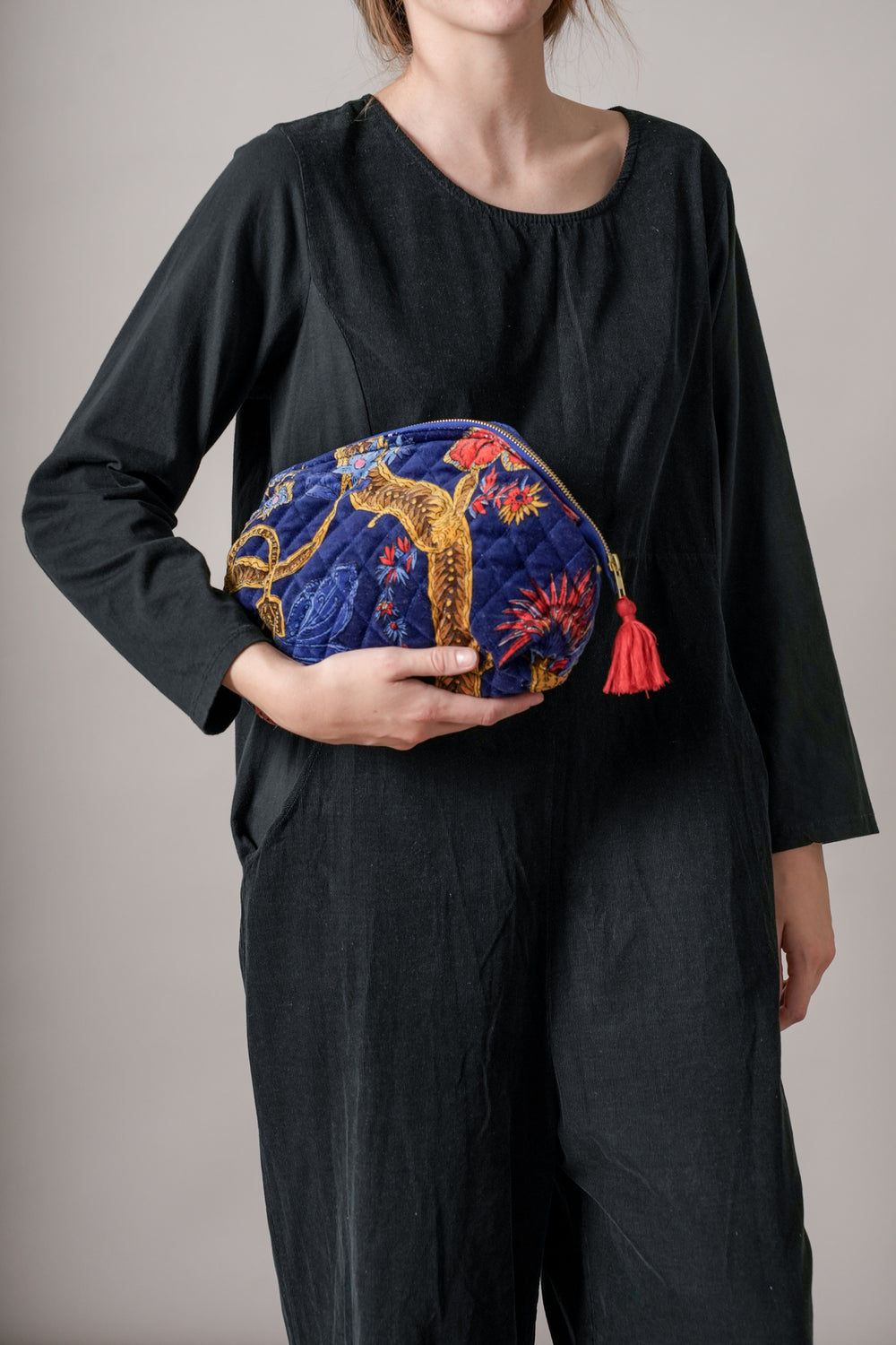 This 100% organic cotton velvet pouch is perfect for throwing in your handbag, taking on a trip away, and even for elevating your look as a clutch bag. With a large main compartment and two pockets in the lining, this velvet pouch has enough room to store all the products you’d need for any event.