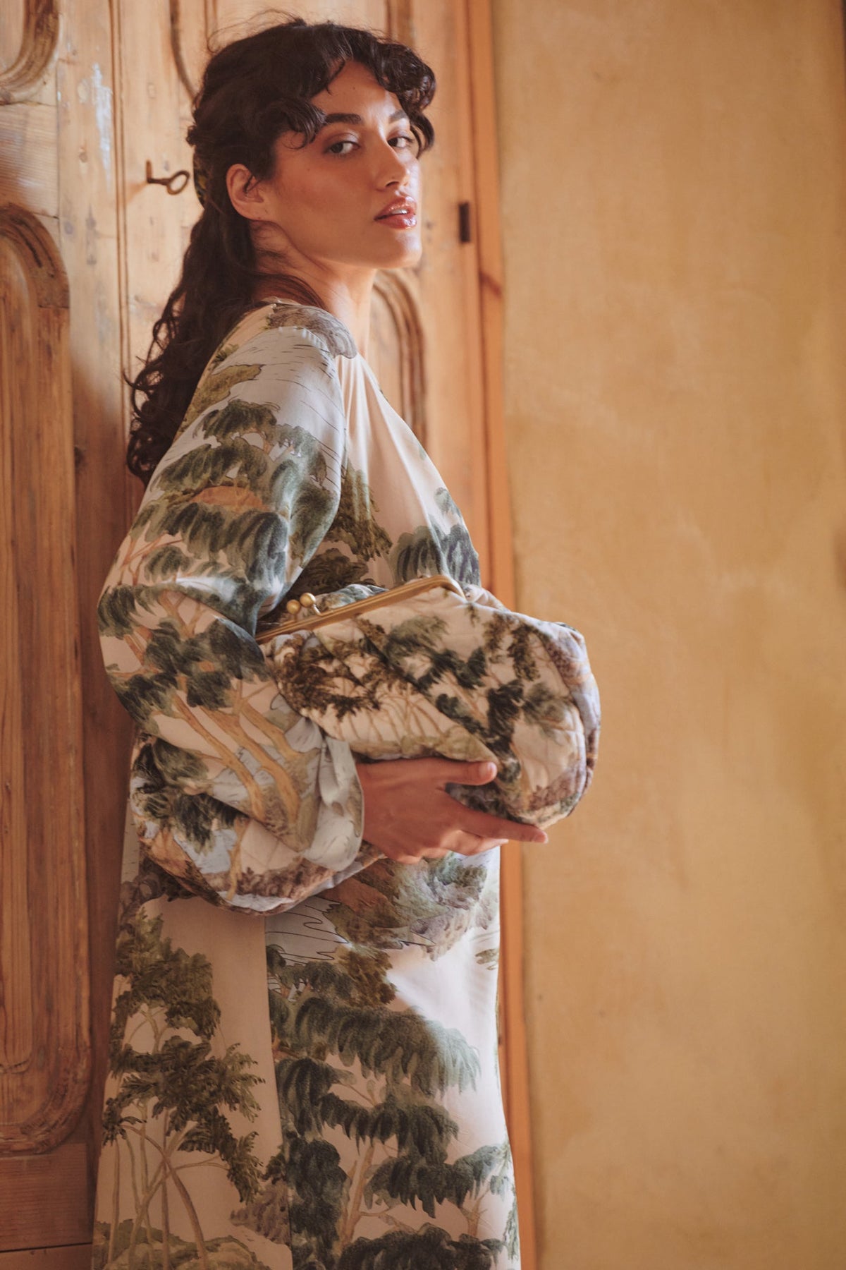 Rivers and Trees Natural Quilted Velvet Kiss Lock Bag