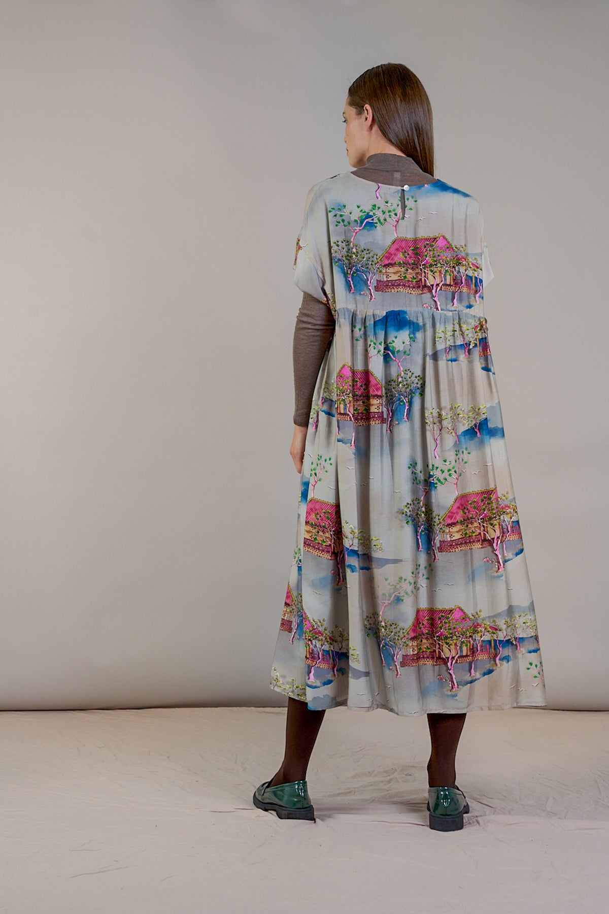 Our classic shape Pleat Dress is an oversized fit, features cap sleeves and hidden side pockets for a comfortable easy wear and is a wardrobe staple.
