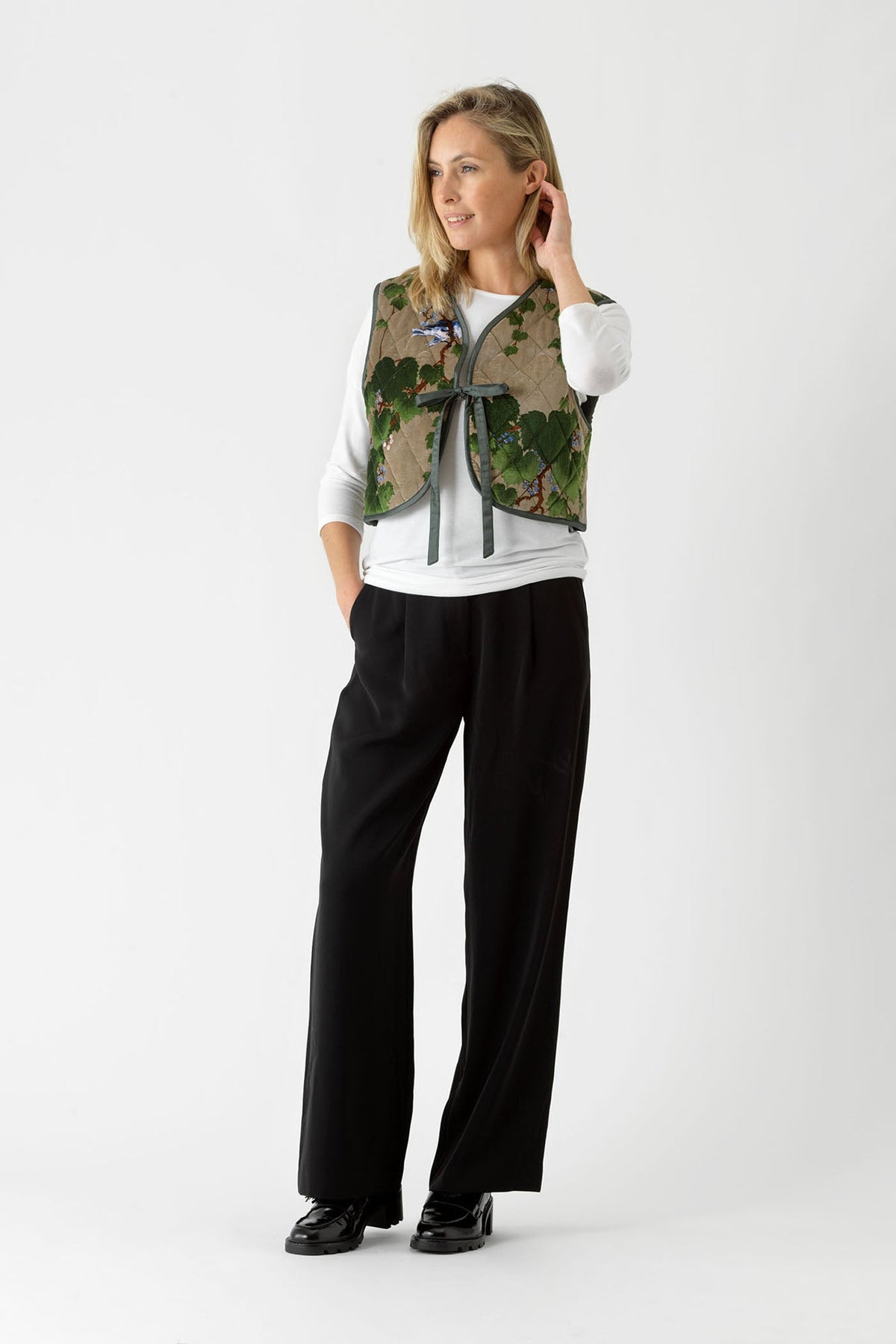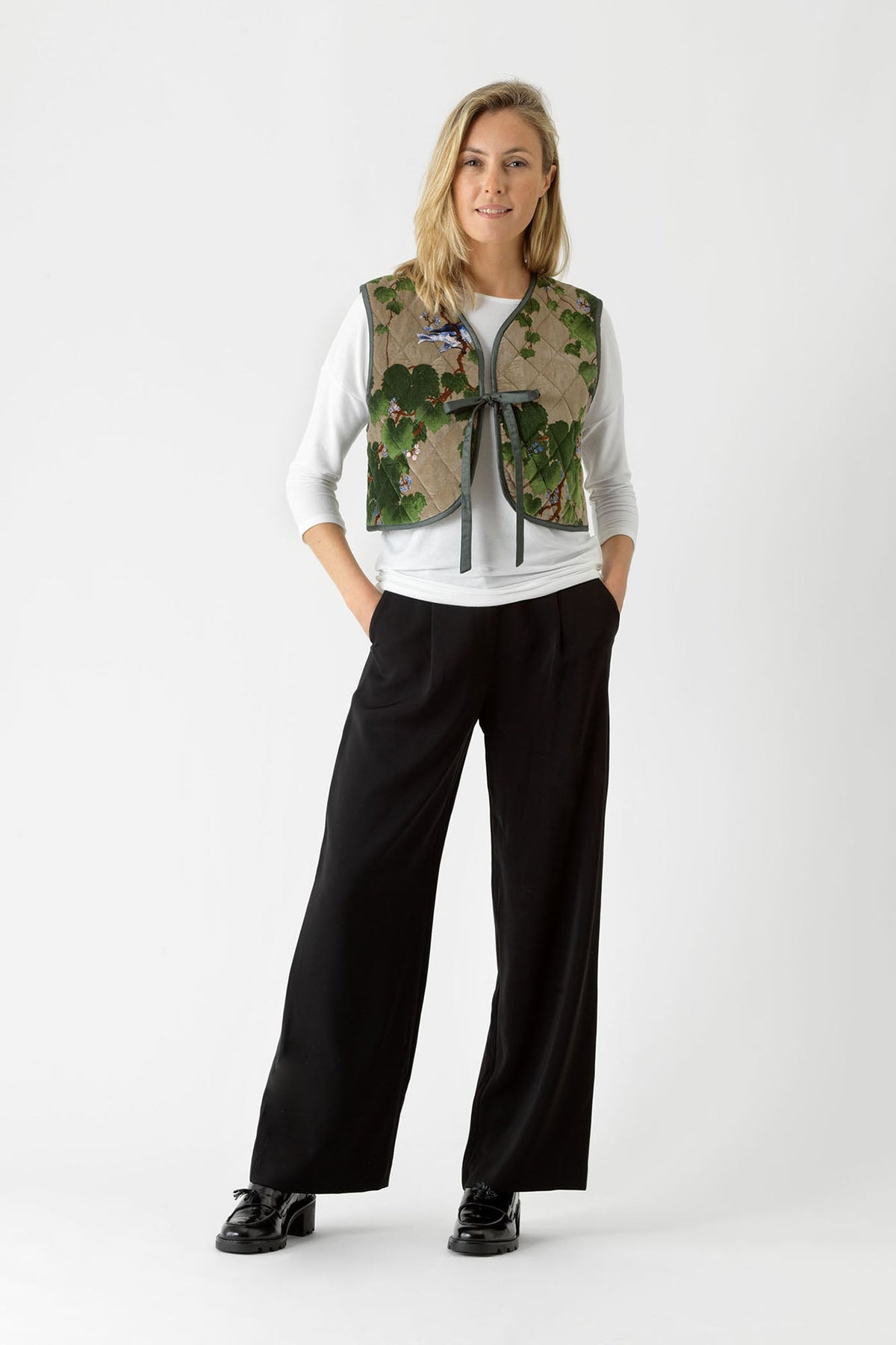 This luxury cotton velvet gilet is lined with silky soft satin and has two ties which can be secured at the front or removed according to your preference. It has been designed to pair with a simple shirt or over a long a dress with boots to add a little extra colour and interest factor to some of your staple autumn winter outfits.
