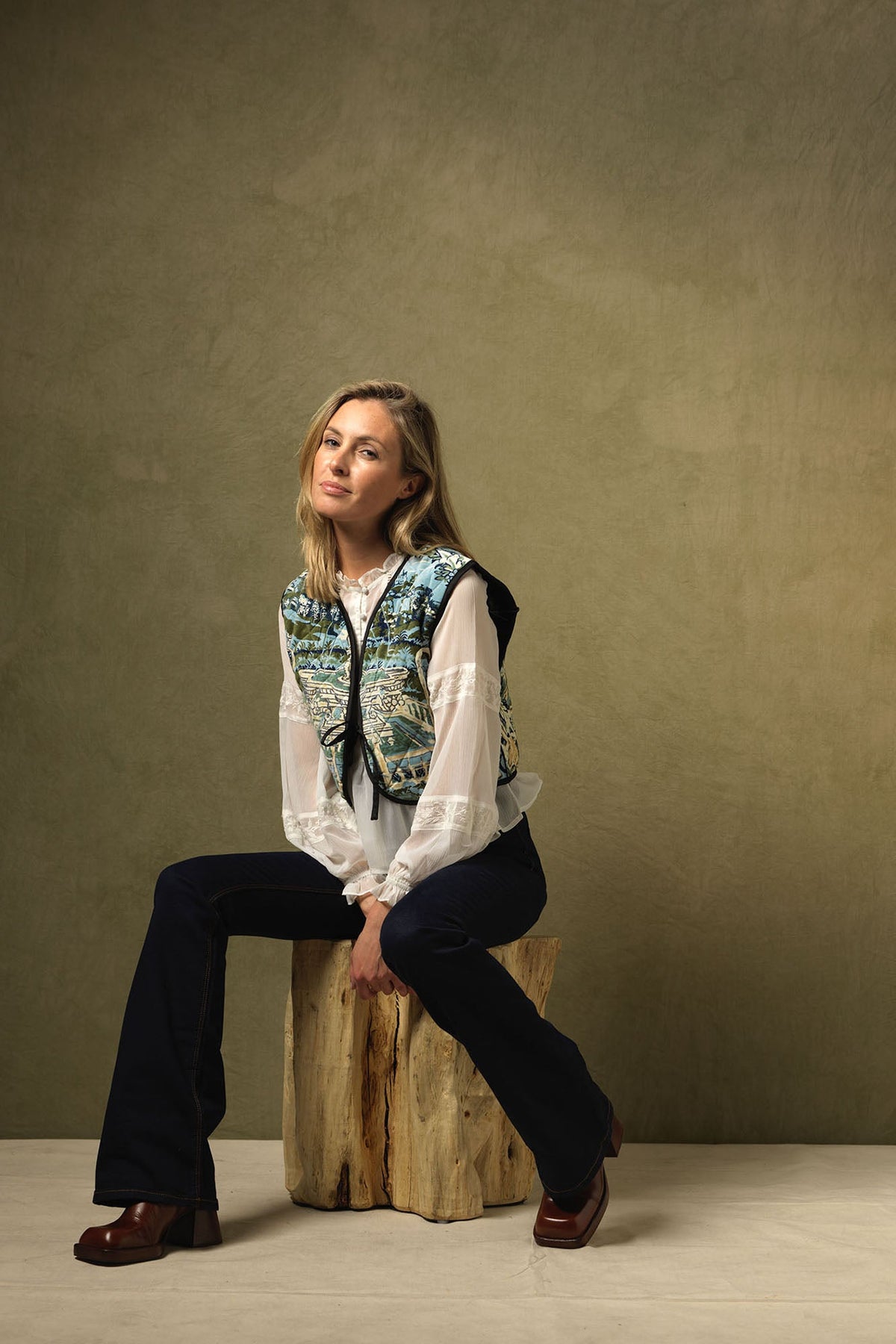 This luxury cotton velvet gilet is lined with silky soft satin and has two ties which can be secured at the front or removed according to your preference. It has been designed to pair with a simple shirt or over a long a dress with boots to add a little extra colour and interest factor to some of your staple autumn winter outfits.