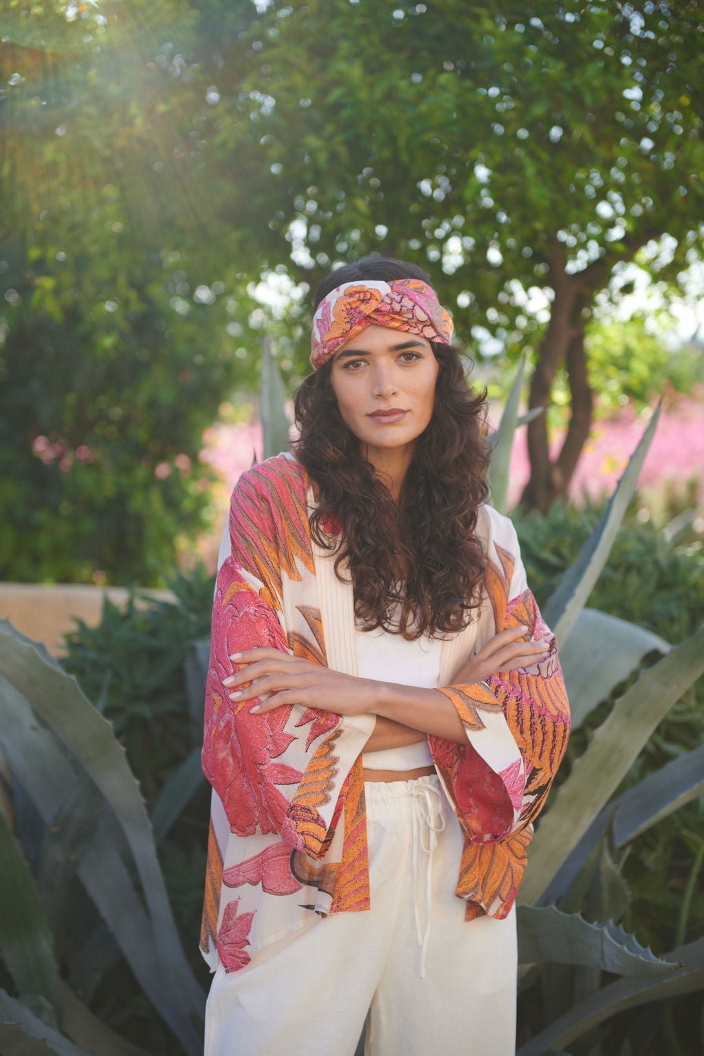 Please note to reduce waste in our manufacturing process our headbands are made from the offcuts from our kimonos and gowns. This means each headband is a unique and one-off piece, so the one you purchase may be different to the one in our photographs.