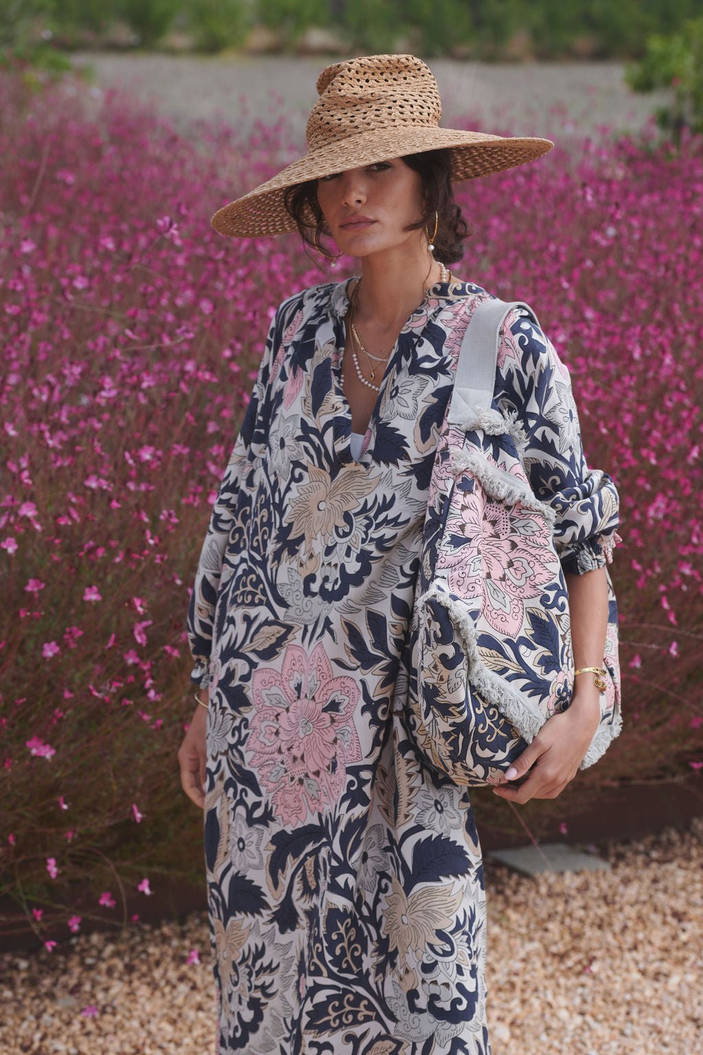 Inspired by a traditional Indian block print with eye-catching floral motifs throughout the design, we’ve also given this a neutral palette to make for a sophisticated but easy-to-wear print.