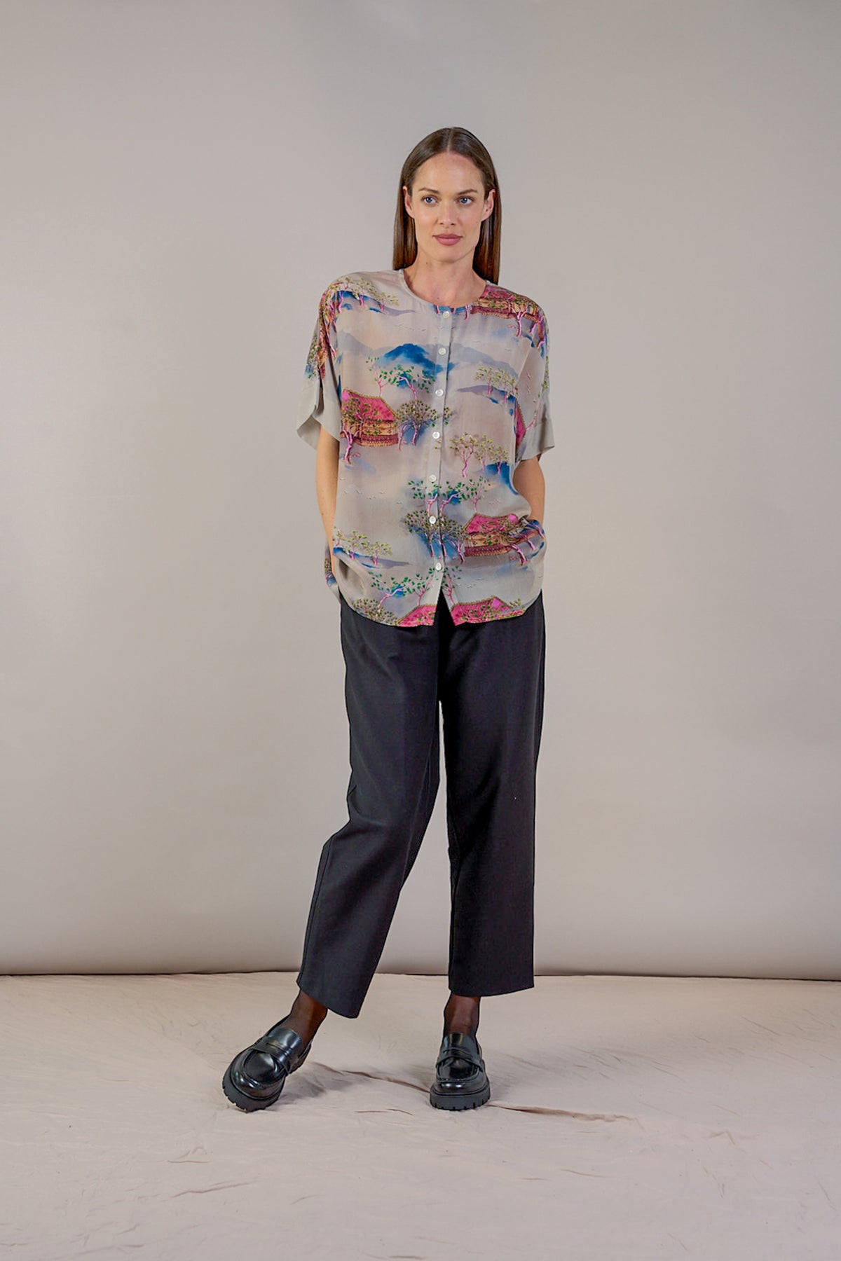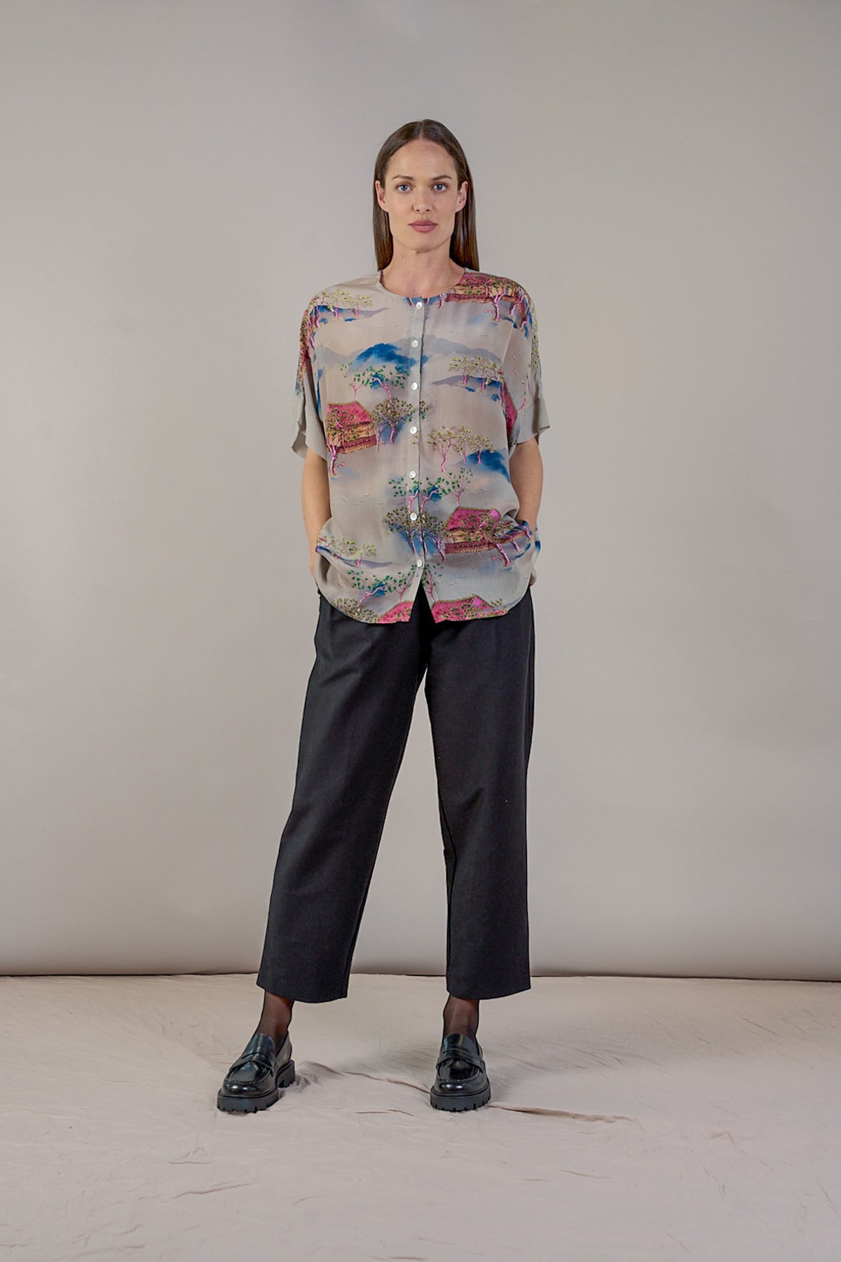 Made from our classic crepe fabric, this top is light weight, floaty, and finished with pretty mother of pearl buttons.