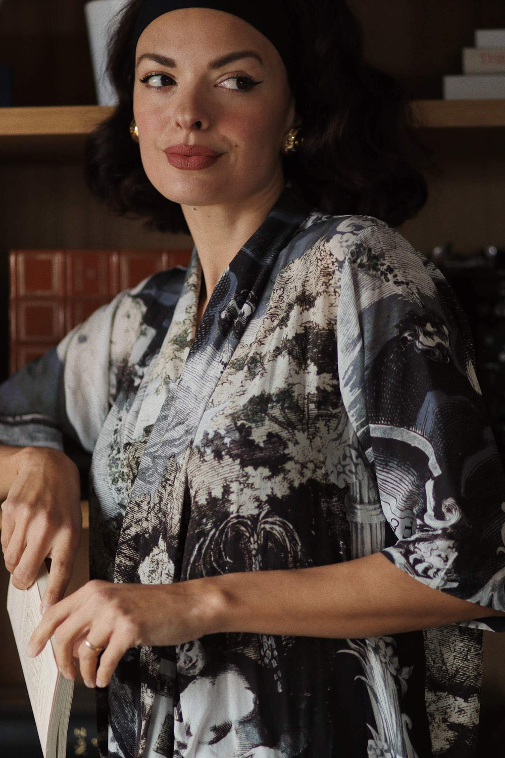 This scenic print features gardens and sculptures inspired by the Palace of Versailles and Louis XIV The Sun King. Carefully coloured in tones of black, grey and subtle green, Sunburst is perfect for anyone looking for a slightly more edgy print within our Autumn Winter collection.