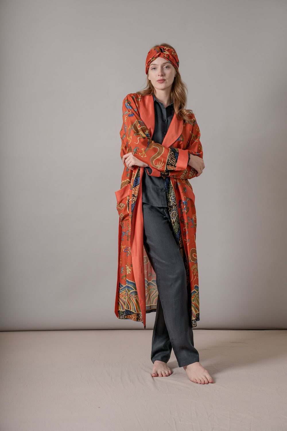 Please note to reduce waste in our manufacturing process our headbands are made from the offcuts from our kimonos and gowns. This means each headband is a unique and one-off piece, so the one you purchase may be different to the one in our photographs.