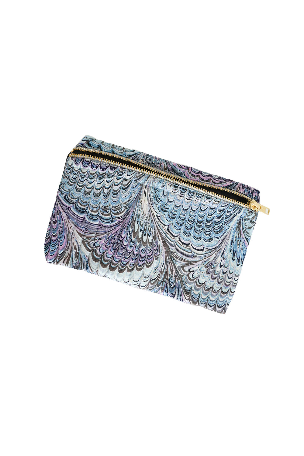Our Marbled print is inspired by classic Venetian paper marbling techniques used to line vintage books. This print features all shades of blue, from aquamarine to cobalt, with cleverly placed greys and whites.