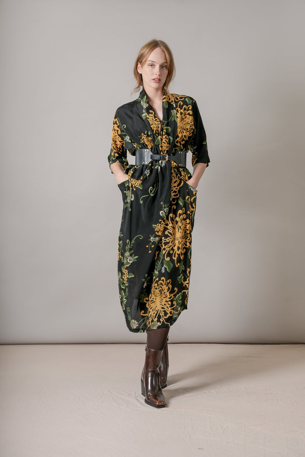 Our Chrysanthemum print celebrates the beauty of this elegant flower and its stunning yellow florals! Perfect for any time of year, this joyous floral print is perfect for pairing with a colourful accessory, shoes, or lipstick!