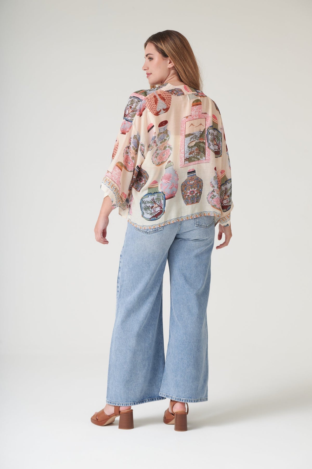 Our bestselling kimono jackets have loose ¾ length sleeves, an open front and a lightly embroidered lapel. Pair with a matching camisole and your favourite jeans in summer or layer over a polo neck during the cooler months.