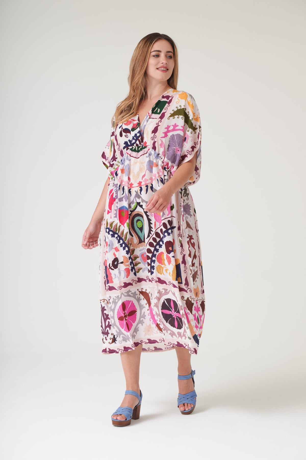 Made with our cool crepe fabric this style is perfect for a beach cover up or a floaty city dress.