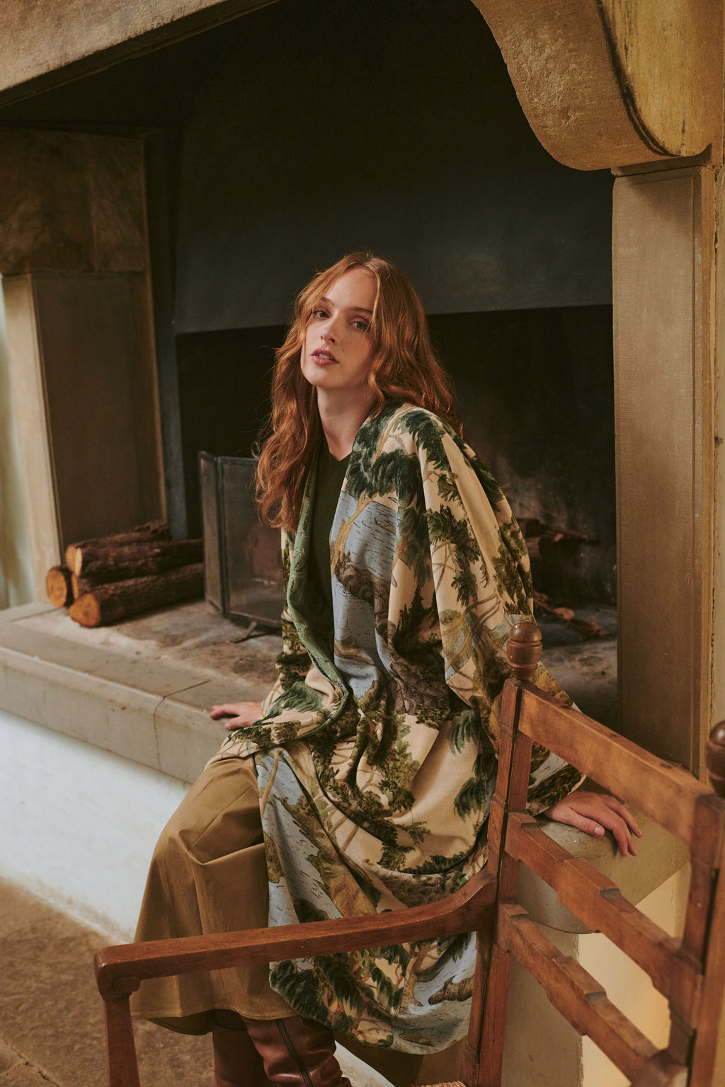 Rivers and Trees Natural Quilted Velvet Kiss Lock Bag