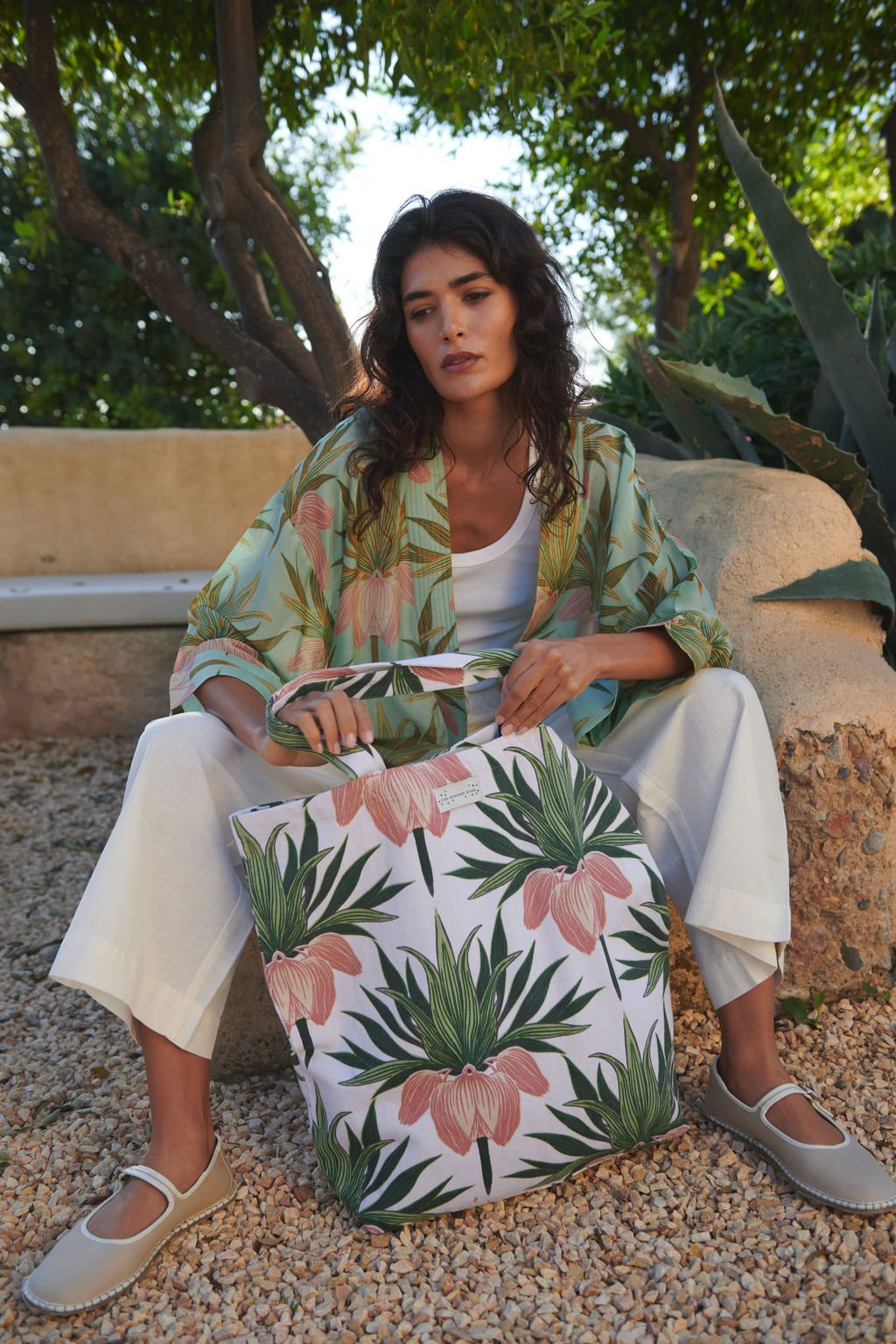 This 100% sustainable cotton bag, is just as versatile as it is beautiful. Whether it becomes your go to reusable shopping bag, a classic tote for keeping your books in or a chic beach bag, this print is sure to turn heads!