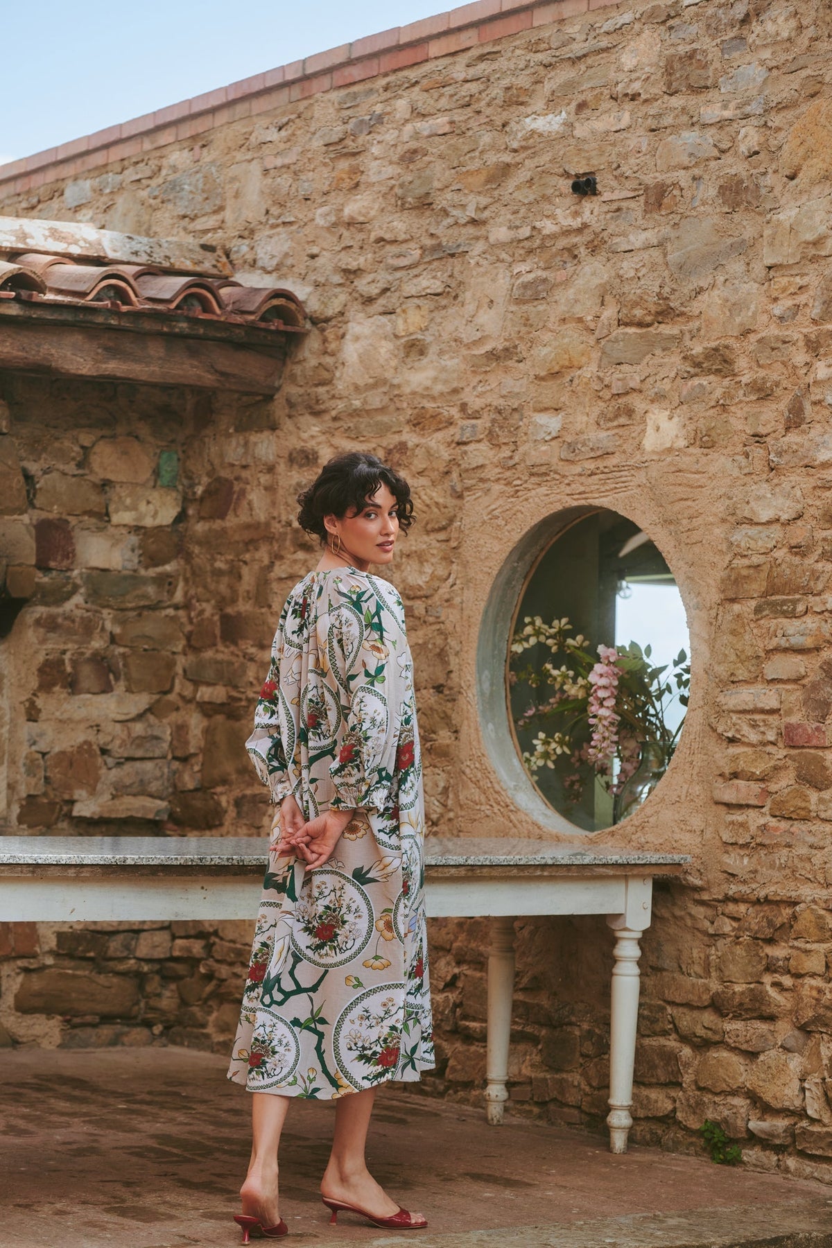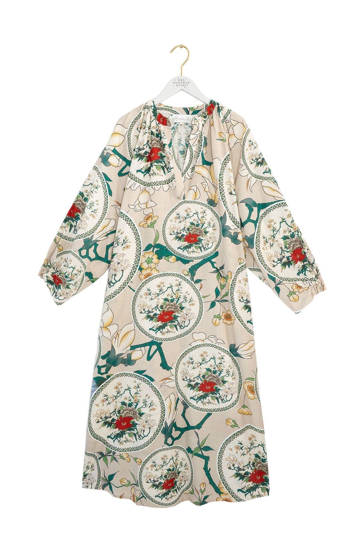 Made with a linen mix fabric, this dress features a flattering placket neckline, a raglan sleeve, hidden side pockets and a half elasticated cuff and perfectly displays our bespoke prints.
