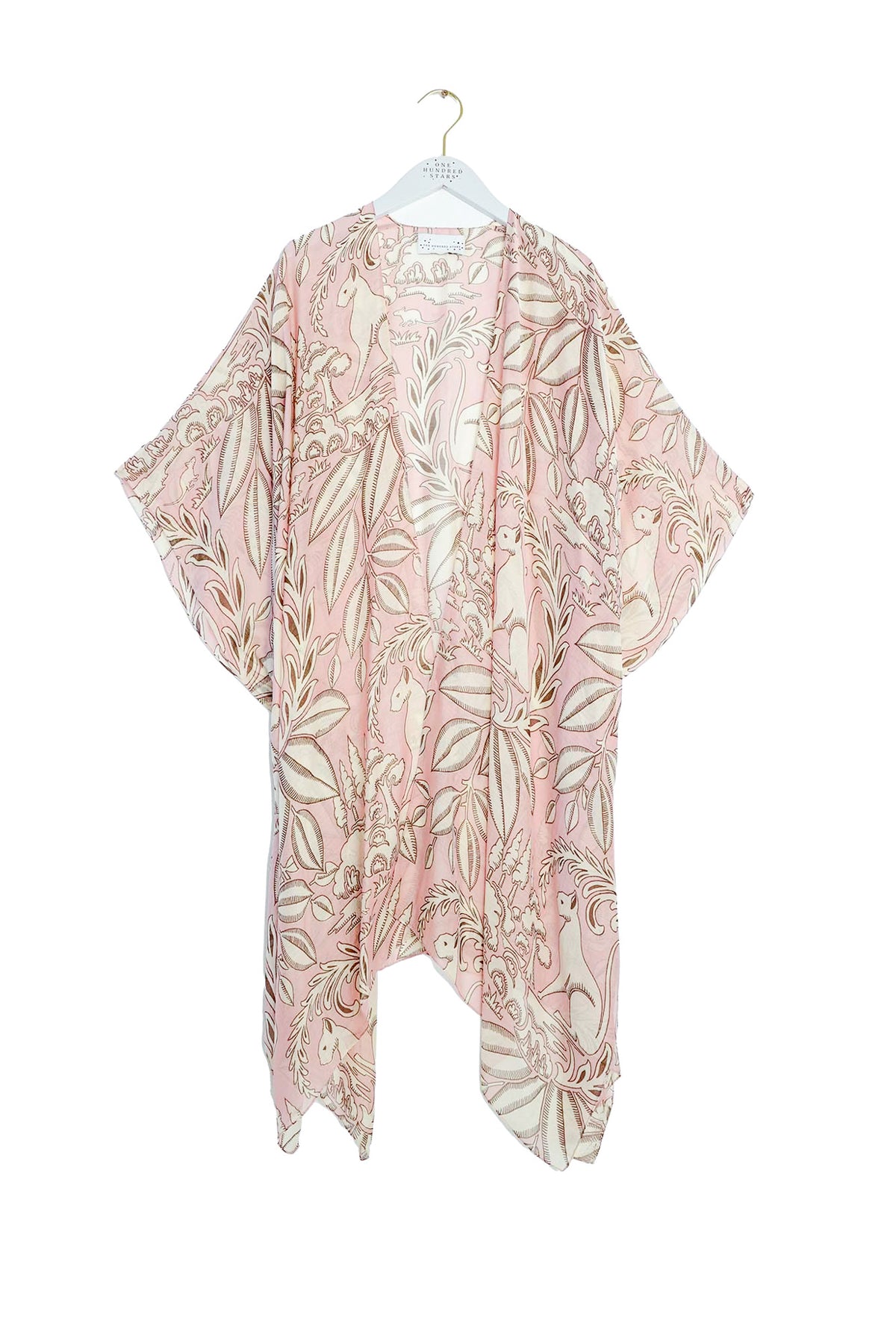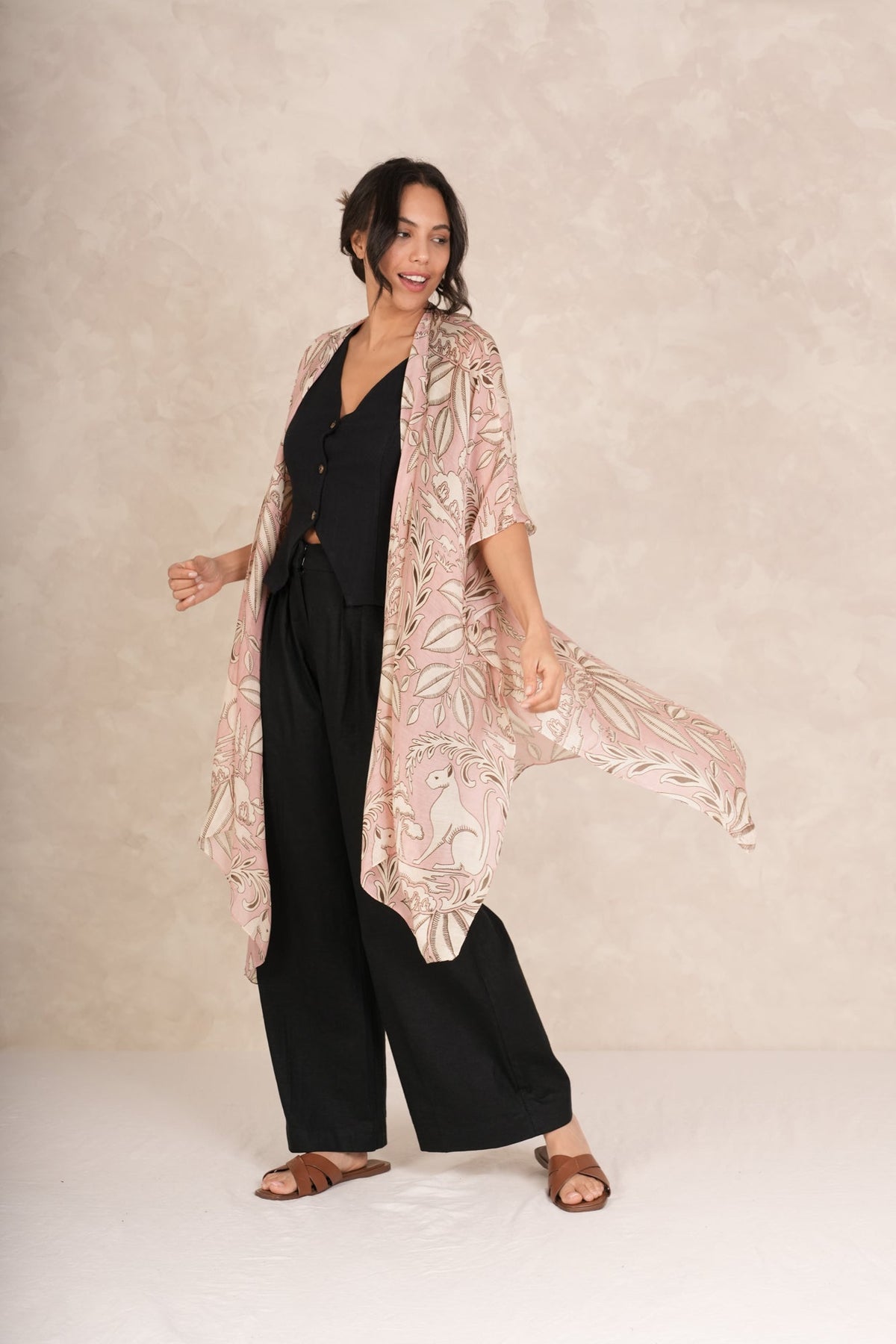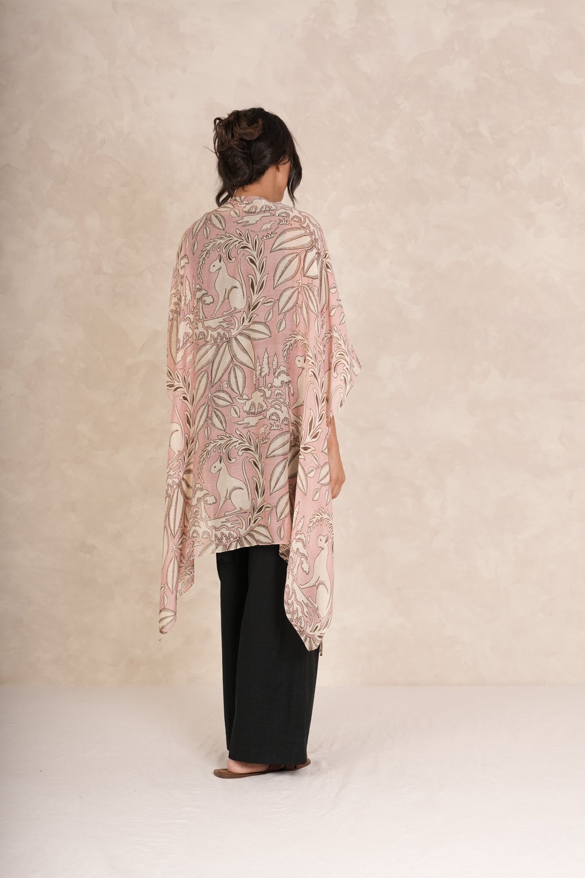 A bold and classical print, this high-impact, elegant Sphinx design features cats, wreaths, and leaves on the background of our signature Plaster Pink colourway. Spring or summer, this is a perfect complement for faded denim and light linens.