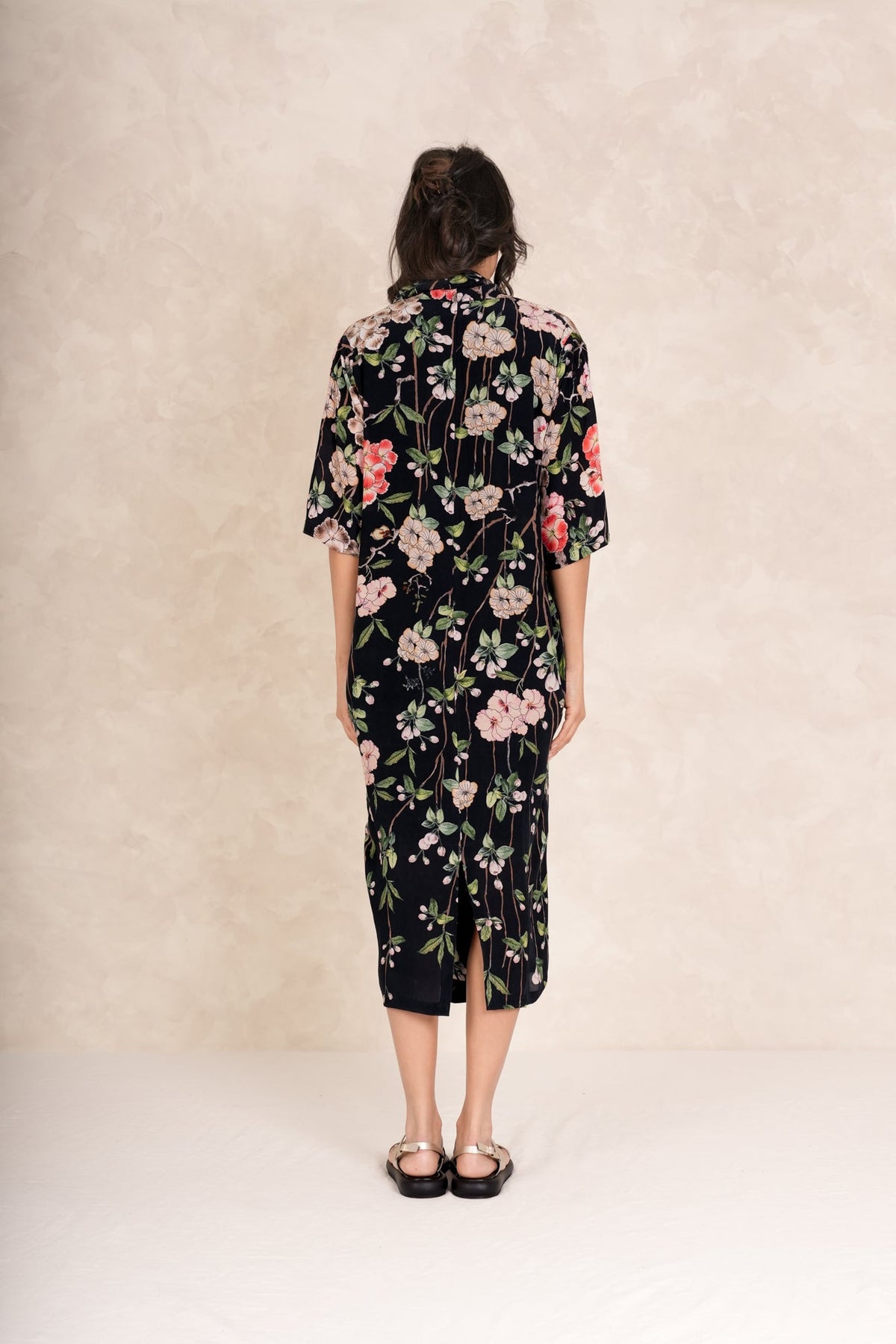 Showcasing beautiful cherry blossom flowers trailing down in a gentle waterfall effect, this delicate floral print represents the coming of spring and brings a sense of vitality and vibrancy to this season’s collection.